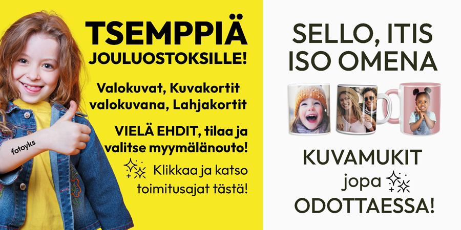 Myymälästämme saat myös monipuoliset kuvapalvelut. Paikan päällä voit tilata aidot valokuvat myös puhelimen kuvista. Fotomaatti-kioskeilla voit rauhassa selailla digikuviasi ja tilata